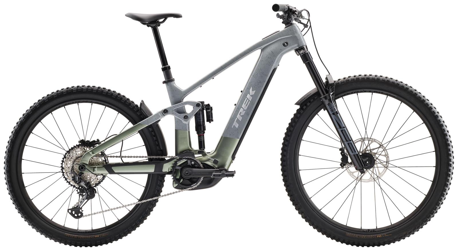 Einen Rahmen aus OCLV Mountain Carbon mit Bosch Performance CX System mit bis zu 750 W Leistung und bis zu 100 Nm Drehmoment samt abnehmbarem, integriertem RIB 2.0 Akku mit massiven 800 Wh Kapazität. Eine RockShox ZEB Select Gabel mit 160 mm Federweg, DebonAir Federung und Charger RC Dämpfung sowie einen RockShox Super Deluxe Select+ RT Hinterbaudämpfer mit ebenfalls 160 mm Hub. Bontrager Line Comp 30 Tubeless-Ready-Laufräder, eine Schaltung mit einem Mix aus Shimano XT/SLX Komponenten, hydraulische 4-Kolben-Scheibenbremsen von SRAM und eine Variosattelstütze mit intern verlegtem Zug.