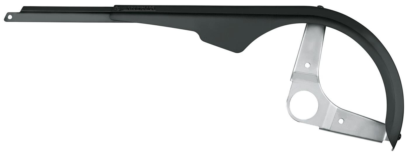 Extrem leicht. Extrem stabil. Der Kettenschutz CHAINBLADE für Kettenschaltung (Kettenblatt max. 44 Zähne) besticht durch hohe Stabilität und das sehr geringe Gewicht. Die Kombination von schlagfesten Kunststoffelementen und Aluminium sorgt für einen hervorragenden Kettenschutz. Das verstellbare Profil ermöglicht maximale Flexibilität. Nur für Kurbelgarnituren mit Kettenschutzring.