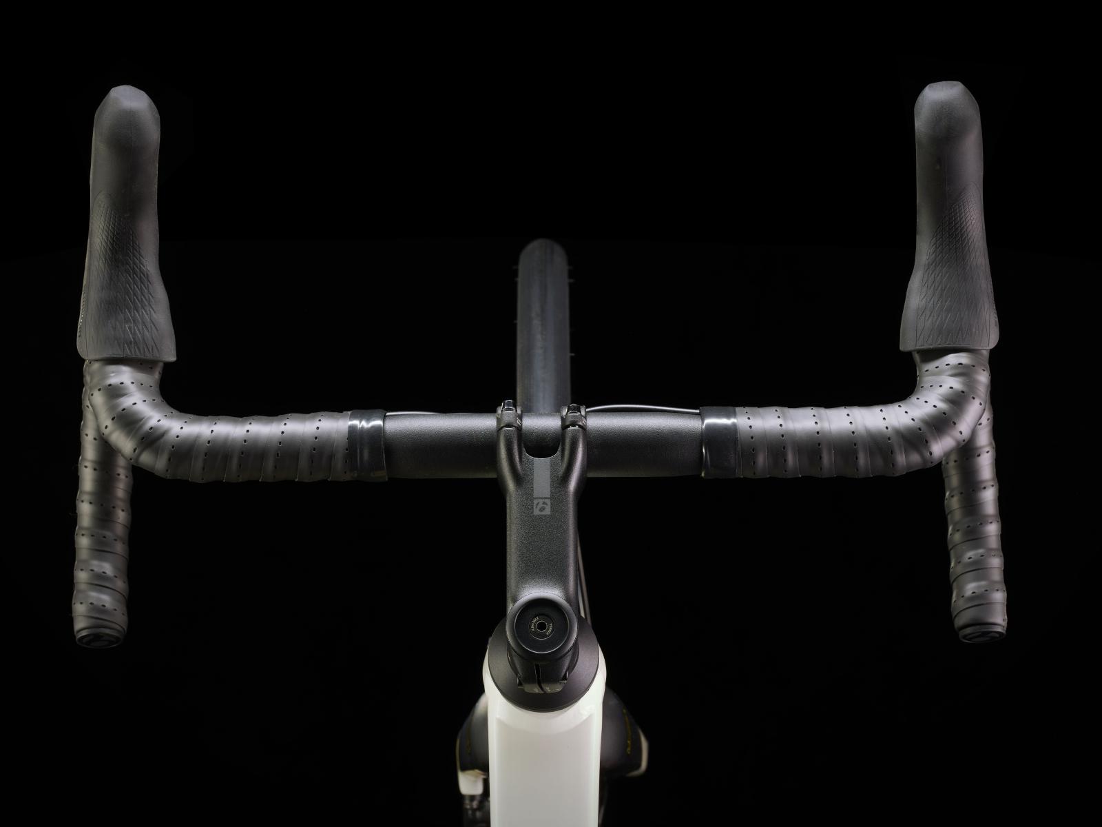 Lenker: Bontrager Comp, Aluminium, 31,8 mm Klemmdurchmesser, 80 mm Reach, 121 mm Drop, 40 cm Oberlenkerbreite, 44 cm Unterlenkerbreite // Bontrager Comp VR-S, Aluminium, 31,8 mm, 81 mm Reach, 11