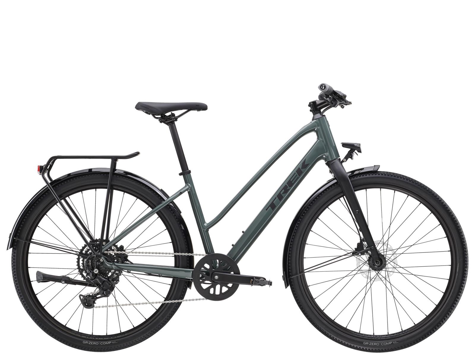 Einen leichten Midstep-Aluminiumrahmen mit interner Zugführung für einen sauberen Look, 650B-Laufräder mit breiten 50C-Reifen zur Verbesserung der Geländegängigkeit und des Komforts in abwechslungsreichem Terrain, eine zuverlässige Shimano CUES 1x9-Schaltung mit breitem Übersetzungsspektrum, komfortable ergonomische Griffe, kraftvolle hydraulische Scheibenbremsen für zuverlässige Bremsleistung bei jeder Witterung, einen MIK-kompatiblen Gepäckträger, Beleuchtung, Schutzbleche und einen Seitenständer.