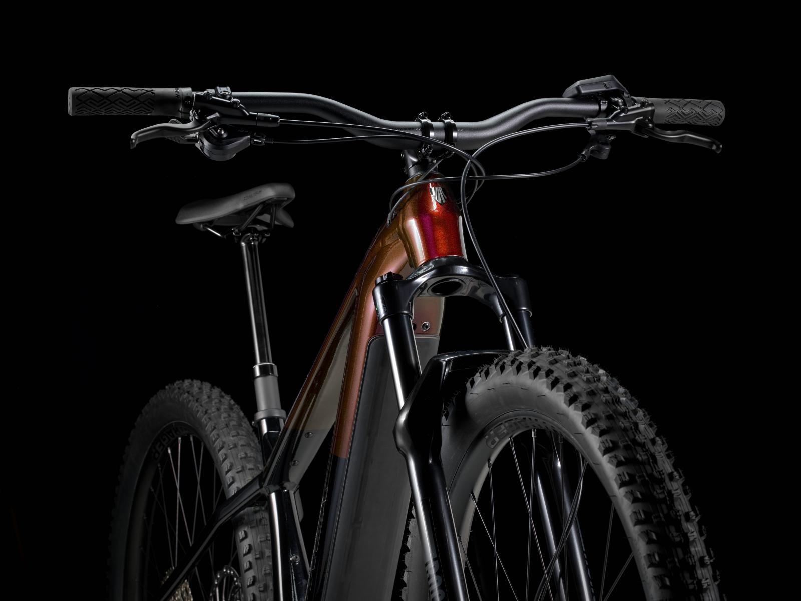 Einen Hardtail-Rahmen aus Alpha Platinum Aluminium mit einer RockShox Recon Silver RL Gabel mit Solo Air Federung und Motion Control Dämpfung. Einen leistungsstarken Bosch Performance Line CX Motor mit 750 W Leistung und bis zu 100 Nm Drehmoment samt herausnehmbarem, integriertem PowerTube RIB 2.0 Akku mit 800 Wh Kapazität und Purion 200 Controller. Eine 12-Gang-Schaltung mit einem Mix aus Shimano Deore/XT Komponenten, Tubeless-Ready-Laufräder von Bontrager, eine Bontrager Line Variosattelstütze, hydraulische 4-Kolben-Scheibenbremsen von Shimano und zahlreiche Befestigungsmöglichkeiten für Taschen und Gepäckträger.