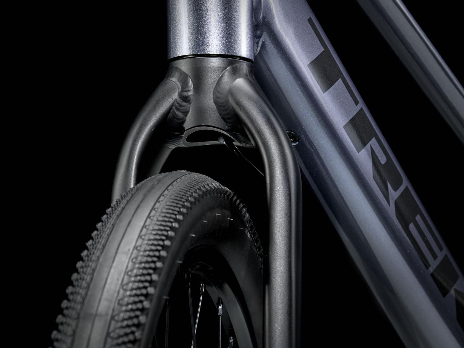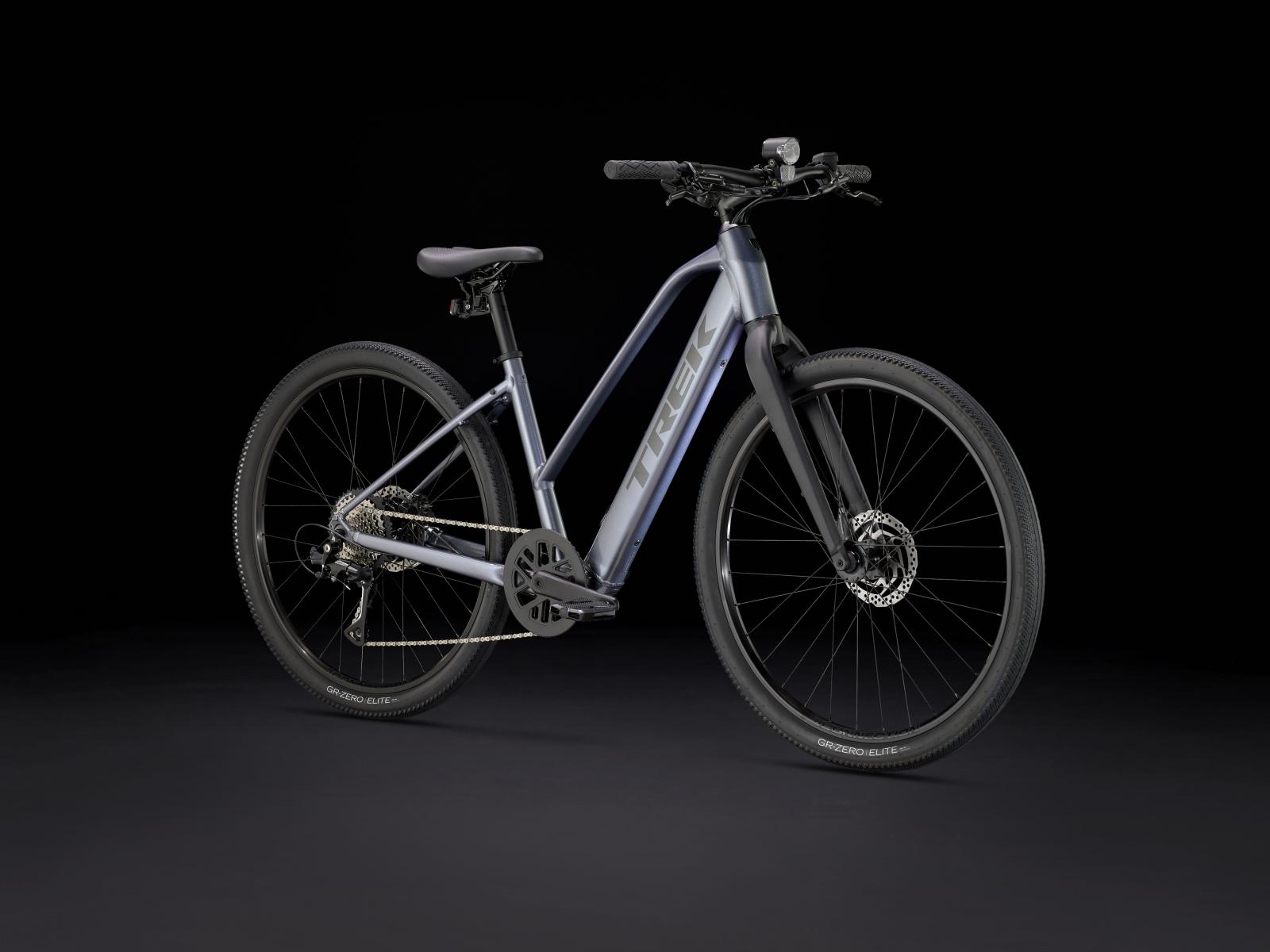 Einen leichten Aluminiumrahmen mit Stagger-Design zum einfachen Auf- und Absteigen, Treks proprietäres Antriebsunterstützungssystem von Hyena mit Nabenmotor mit 250 W Leistung und 40 Nm Drehmoment zur Antriebsunterstützung bis 25 km/h und einen 250 Wh starken Akku für bis zu 55 km Reichweite pro Ladung. Dazu gibt es steife 650B-Laufräder mit breiten 50C-Reifen zur Verbesserung von Geländegängigkeit und Komfort in abwechslungsreichem Terrain, eine zuverlässige 8-Gang-Schaltung von Shimano, hydraulische Scheibenbremsen, eine integrierte, akkugespeiste Beleuchtung und einen Seitenständer.